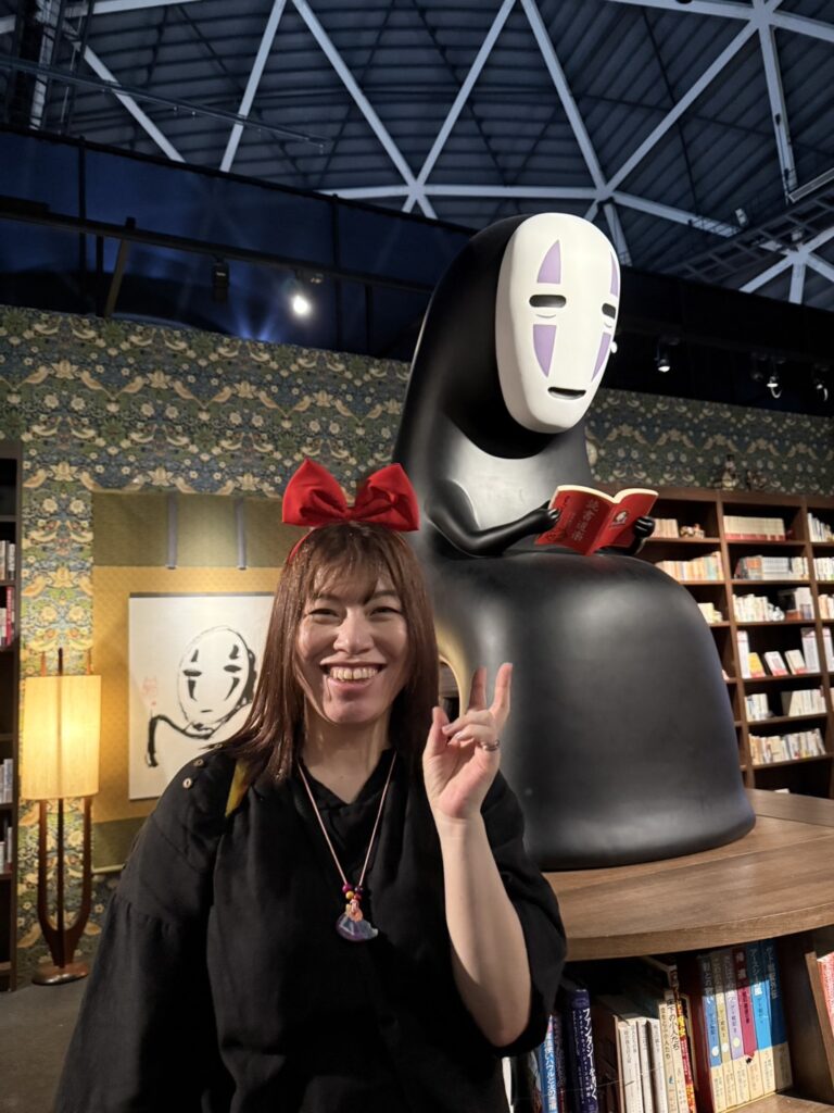 まずは、鈴木敏夫とジブリ展に行きました。ジブリのアニメがどういう思いで作られているのか、鈴木敏夫さんがどのように育ち、インプットしてきたかのようなことがわかる展示でした。フォトスポットも何か所かあり、トトロやカオナシといったキャラクターと写真を撮ることもできました。