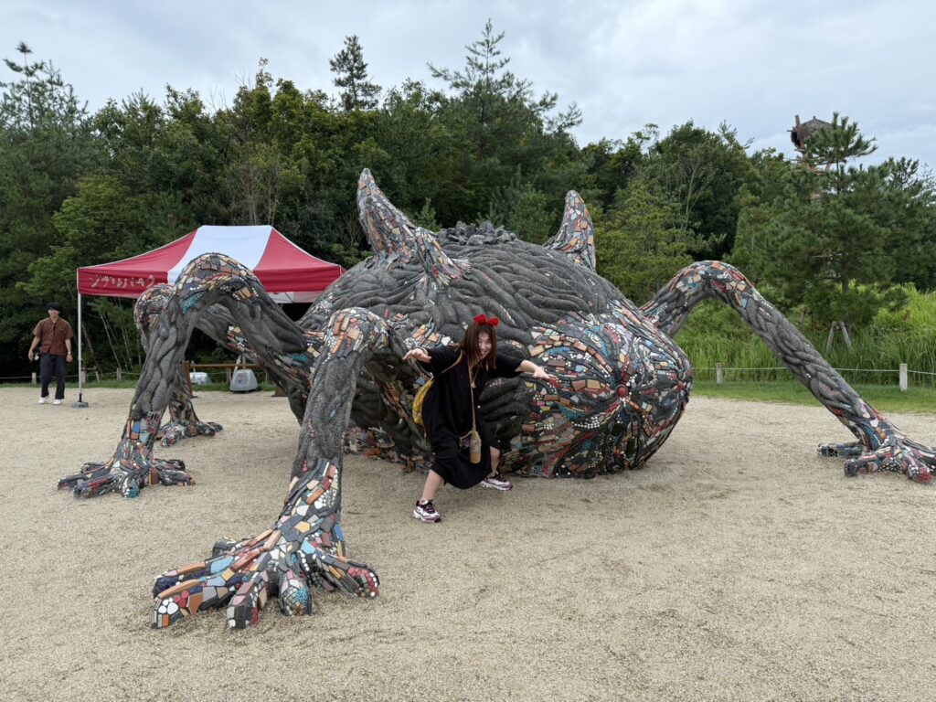 魔女の谷をぐるりとした後は、もののけの里に行きました。タタリ神や乙事主の遊具のようなものがあり、一緒に写真を撮れました。滑り台になっていて、晴れていれば遊べるそうです。
