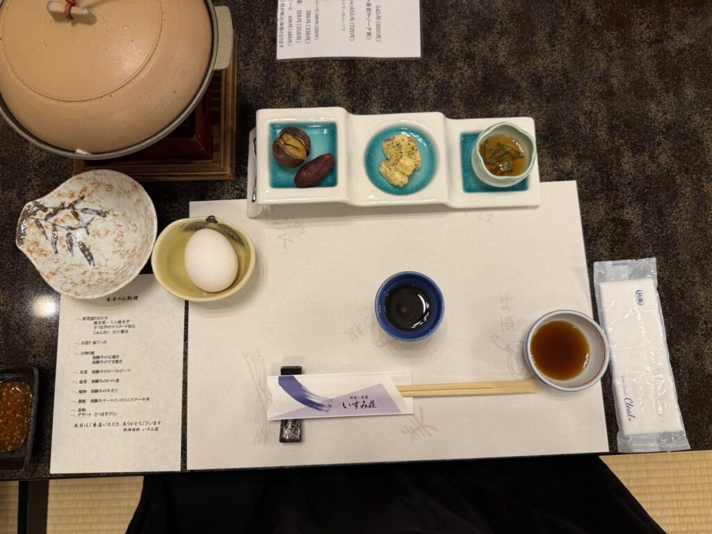すぐに晩御飯の時間だったので、少し休んでから広間に移動して食事です。
