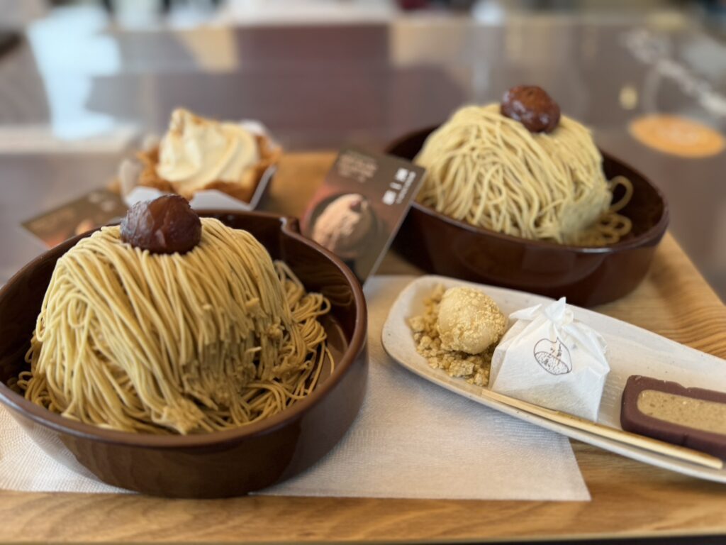 栗は『恵那川上屋』で初めて食べたのは数年前になりますが栗一筋というここでしか味わえない商品で消費期限はわずか30分のモンブランです。甘さはひかえめで栗そのものの味が染み出てまろやかでとても美味しいです。どちらかというと辛い物が好きな私でさえ「あっ!」という間に完食します。少し前にテレビでやっていたので混み具合を想定しかなり早めに出発しましたが、40分くらい並びました。これくらいの待ち時間なら大満足です。相変わらずめっちゃ美味しかったです!